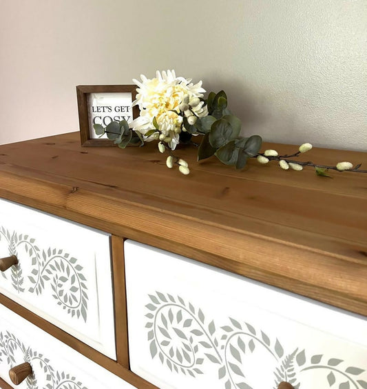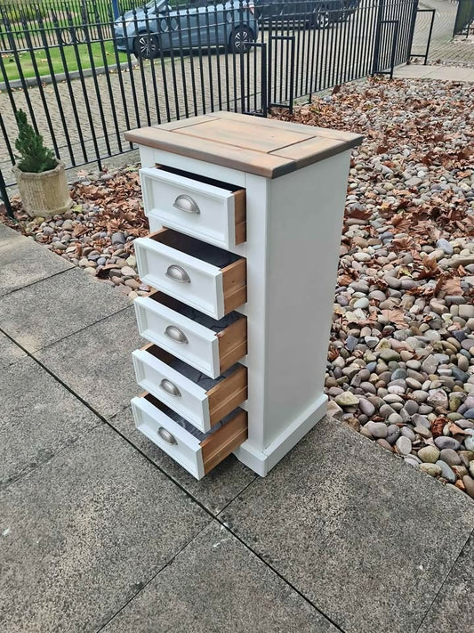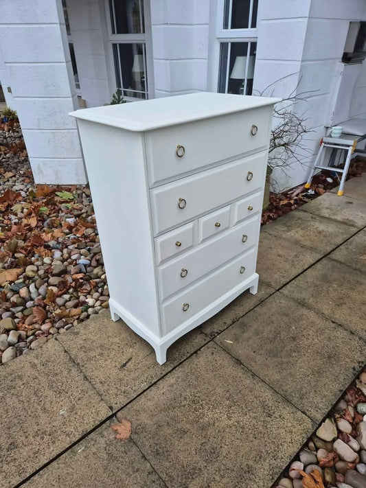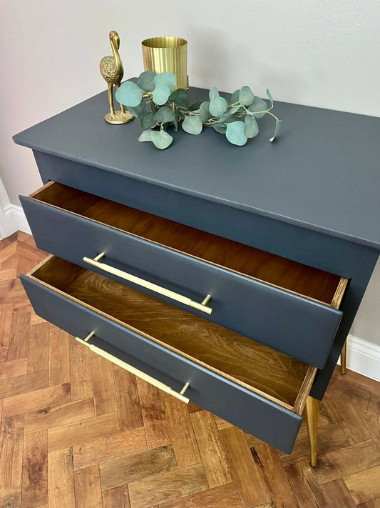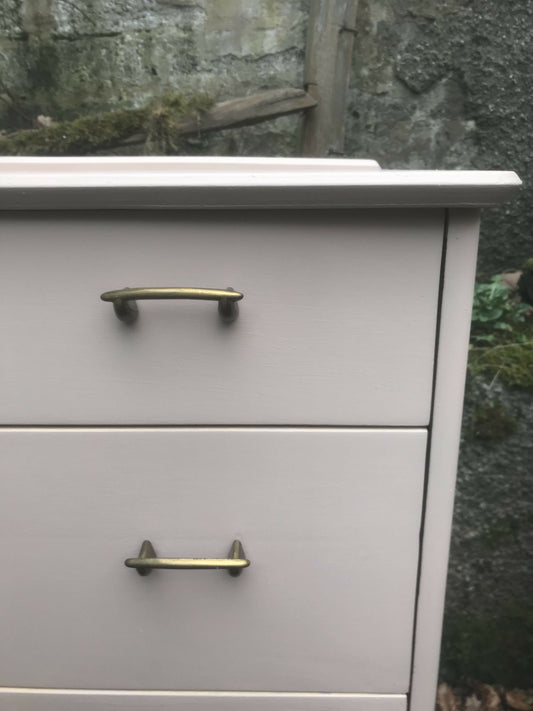 Mid century chest of drawers painted in soft plaster with restored beech legs.