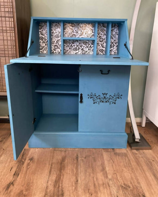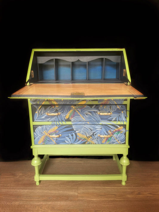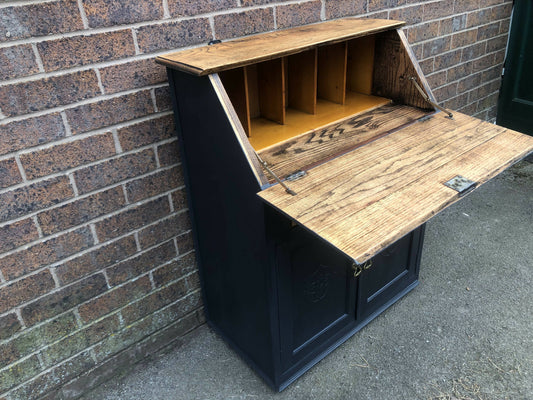 Small Vintage Writing Bureau Handpainted in Dusky Black