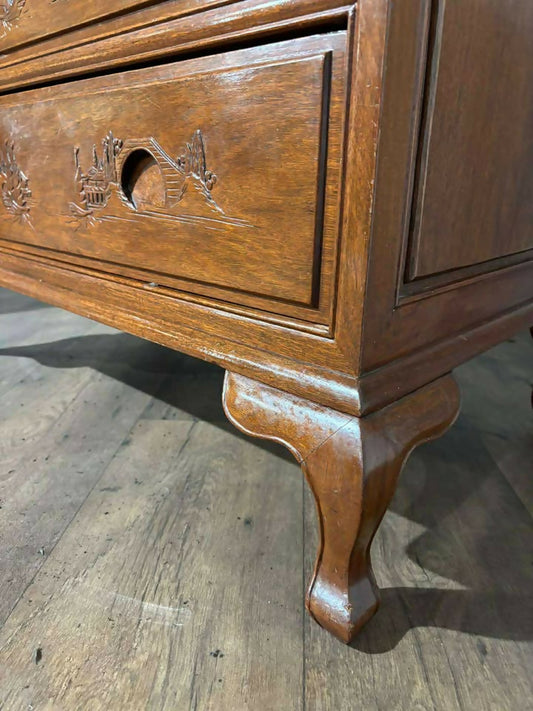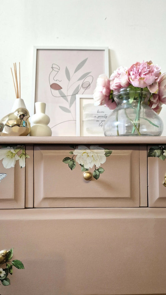 *now sold* Hand-Painted Faux Bone Inlay Vintage Pink Chest of Drawers