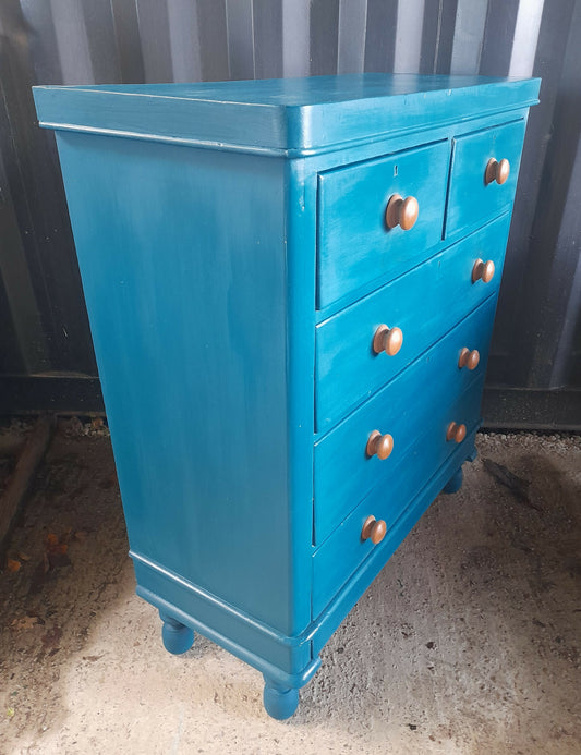 Mid Century Chest of Drawers Hand Painted Green With Gold Legs