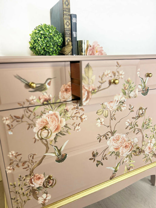 Stag Pink Blossm Tweet 3 over 2 5 drawer chest of drawers