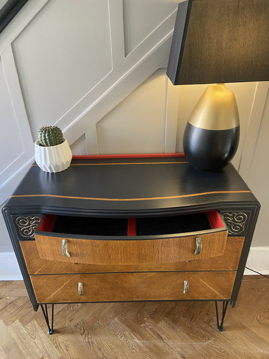 Refurbished vintage Stag Minstrel captains chest of drawers, black, dresser, extended large sideboard mid century