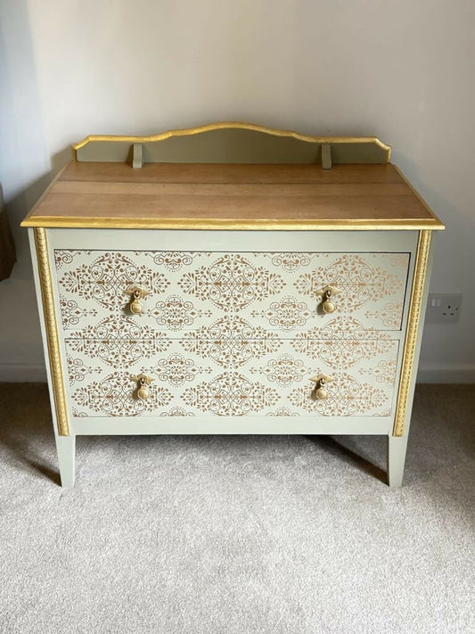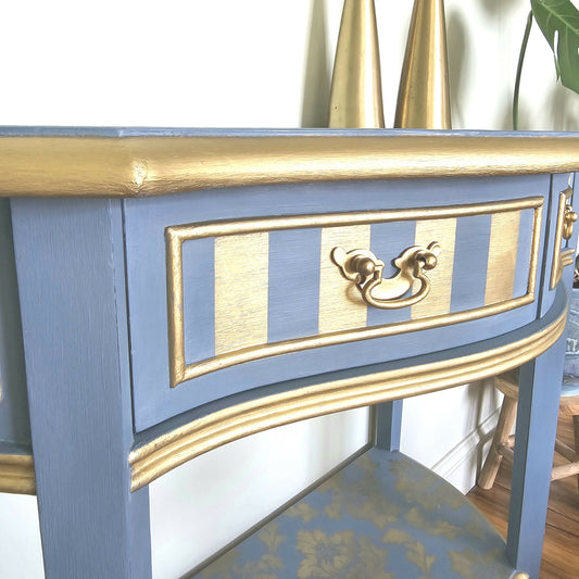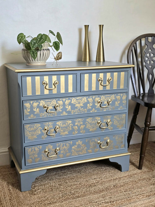 *now sold* Vintage painted blue and gold chest of drawers