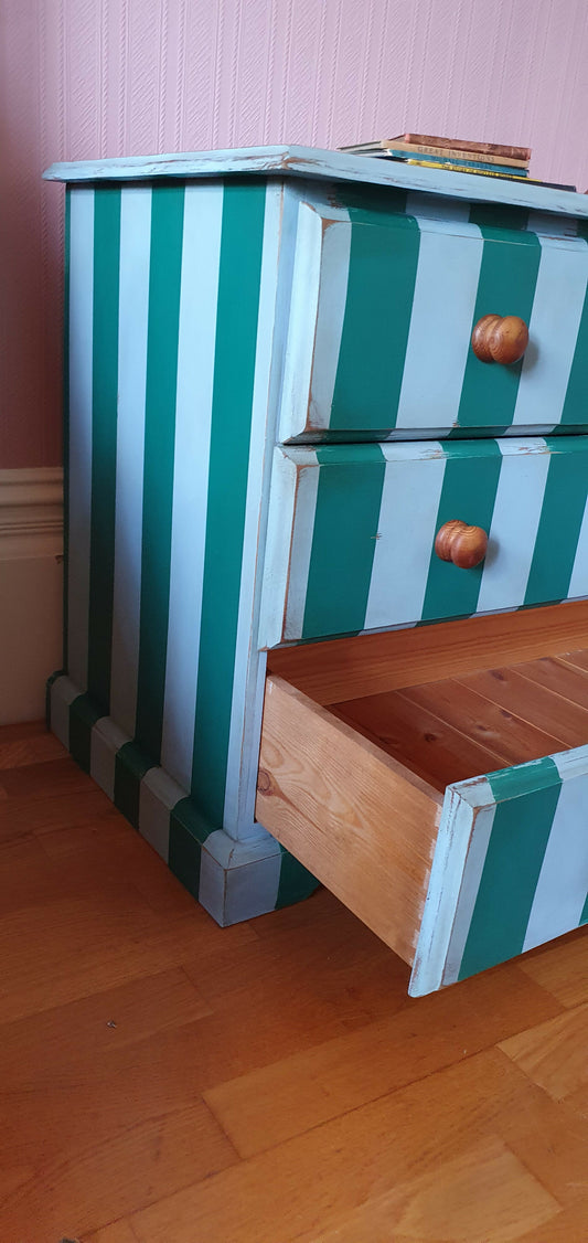 Vintage Pine Striped Chest of Drawers
