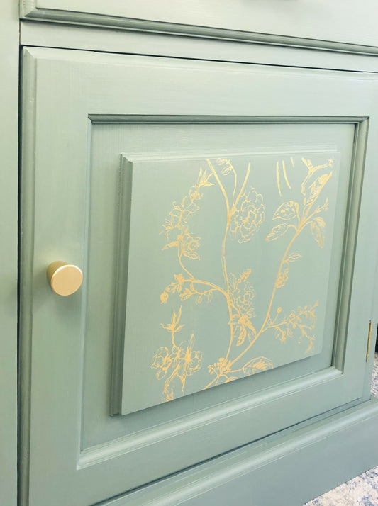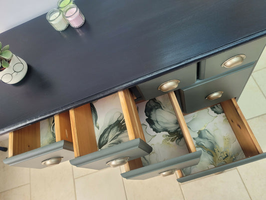 SOLD - Moody floral teal sideboard / chest of drawers