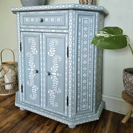 *now sold* Hand painted faux bone inlay pine cabinet