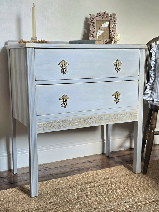 *now sold* Elegant hand painted vintage blue chest of drawers