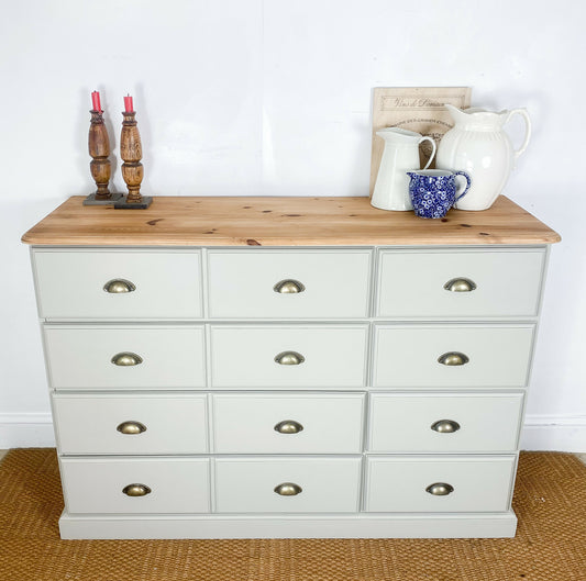 Impressive 4.5ft Solid reclaimed pine sideboard merchants double chest of drawers Newly handpainted