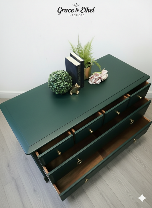 Made to order- Refinished Mid Century Stag Minstrel Chest of drawers, black, vintage dresser