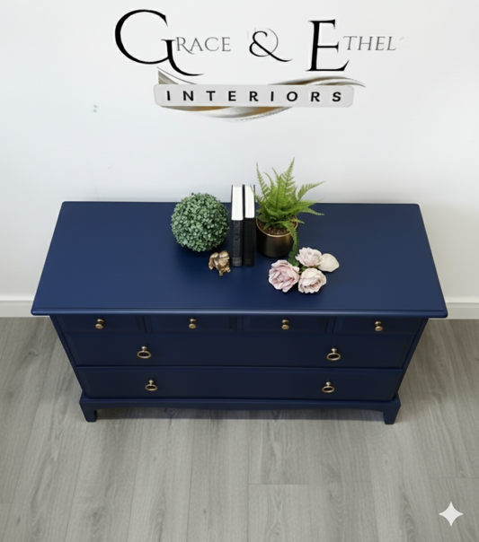 Made To Order - Pretty Refurbished vintage chest of drawers, navy blue with gold foil design, bird song, art deco dresser