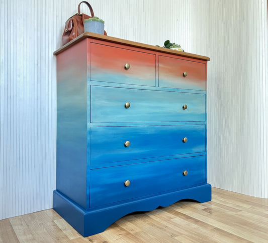Made To Order - Pretty Refurbished vintage chest of drawers, navy blue with gold foil design, bird song, art deco dresser
