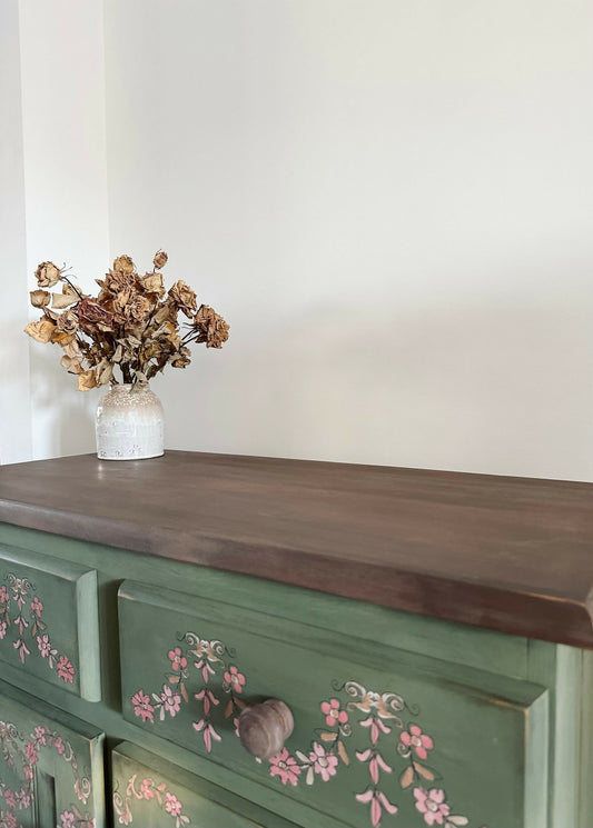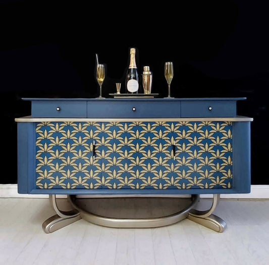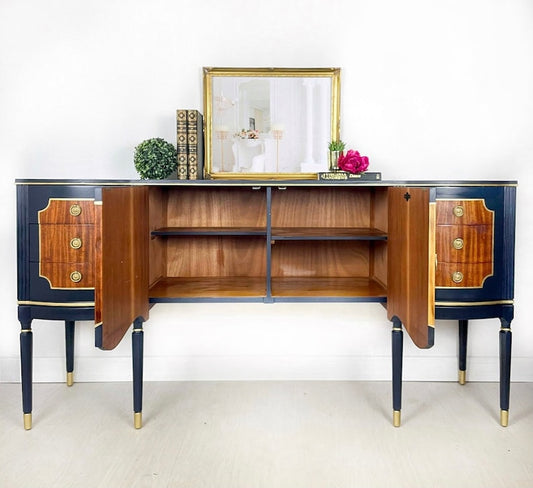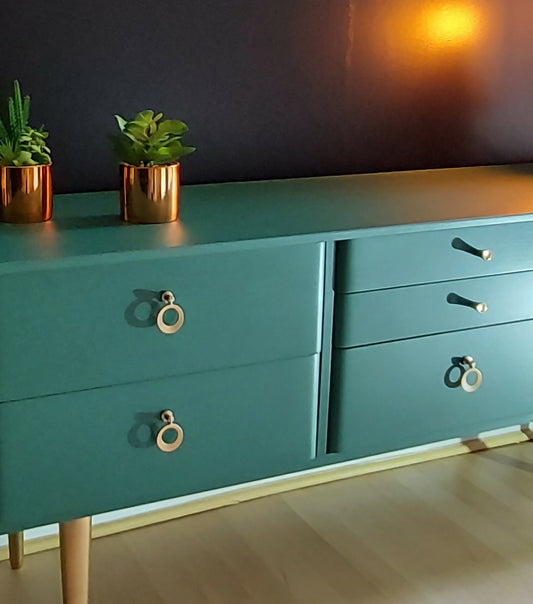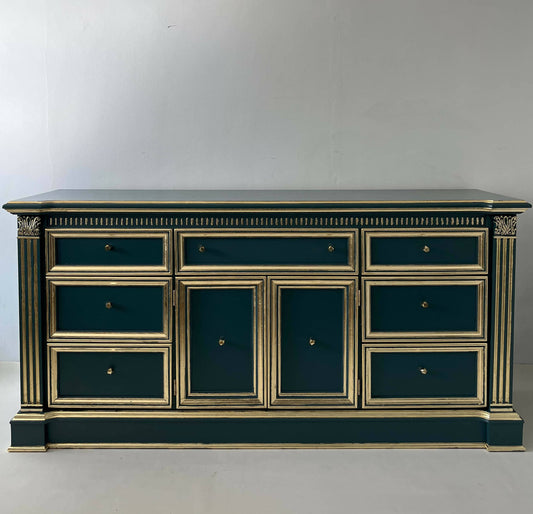 Luxury upcycled Georgian sideboard painted Teal green with gold leaf
