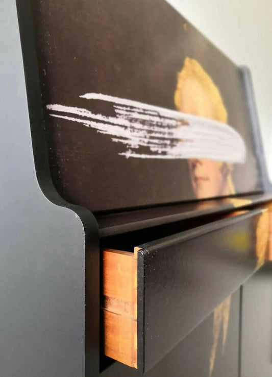 Vintage Upcycled Remploy Bureau. Painting: Masked Hamilton