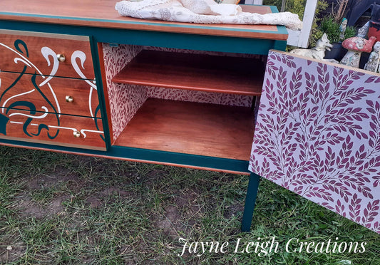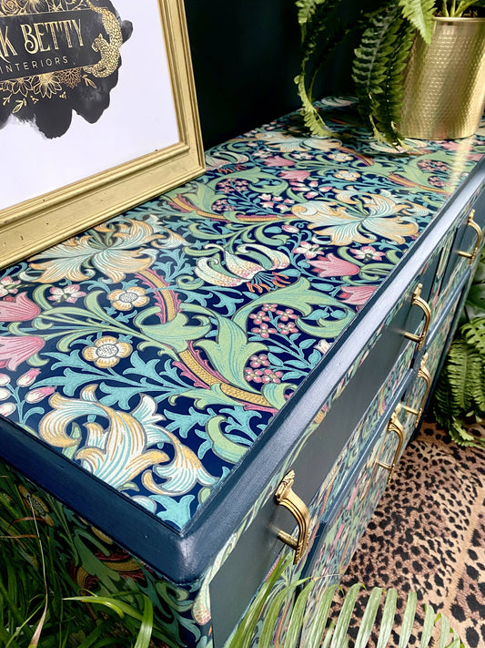 Upcycled, Vintage, Art Deco , 1950s Sideboard, TV Unit , William Morris Print , Living Room, Dining Room Storage.
