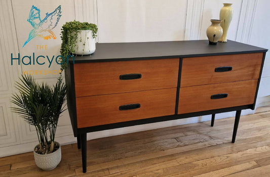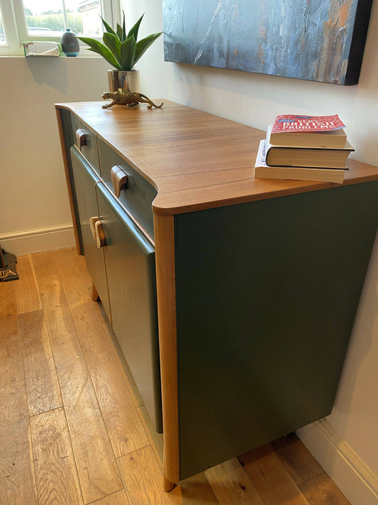 SOLD! Refurbished Retro mid century modern Sideboard/TV Unit/Media stand in dark blue grey, and teak - ‘Franki’