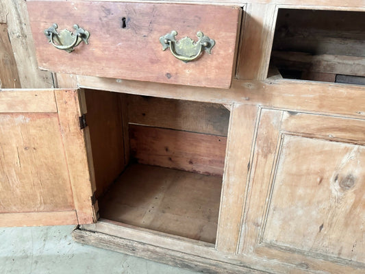 Vintage English Pine Early Victorian Dresser Houskeeper Cupboard, c 1840
