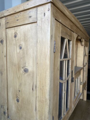 Vintage Large Pine Glazed Bookcase Cabinet Dresser