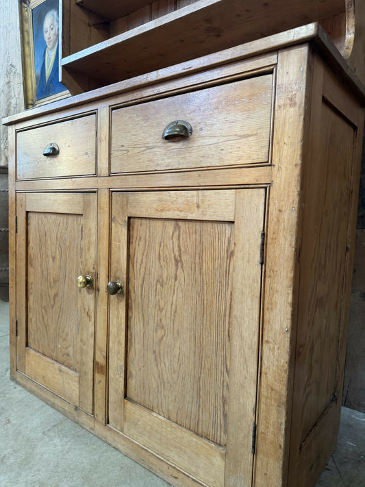 Antique English Early Victorian Country Pine Kitchen Dresser Housekeeper Cupboard, c1830