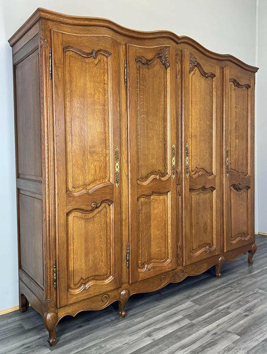 Wardrobe Vintage French Louis XVI Style Oak Four Door Carved Armoire LOT 4811