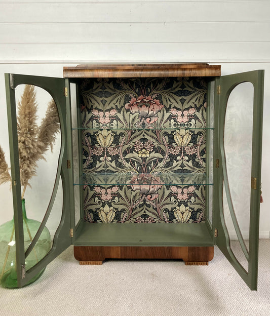 Art Deco Cocktail Cabinet, Teal Green Drinks Cabinet.