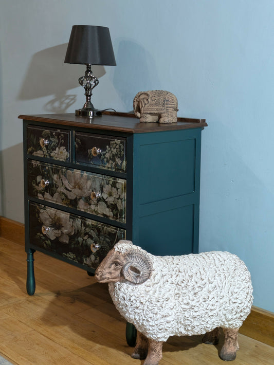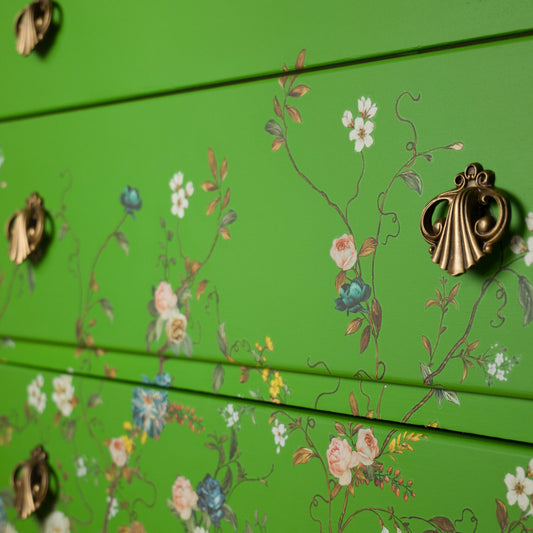 Upcycled Hand-Painted Vintage Chest of Drawers – Botanical Floral Design in Vibrant Green