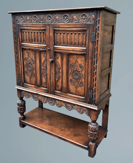 Edwardian carved oak sideboard with 6 drawers and 2 doors.