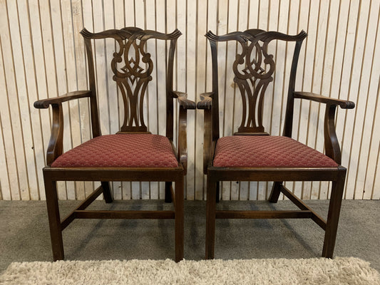 6 Mahogany Chippendale Style Dining Chairs with Red Upholstered drop-in seats.