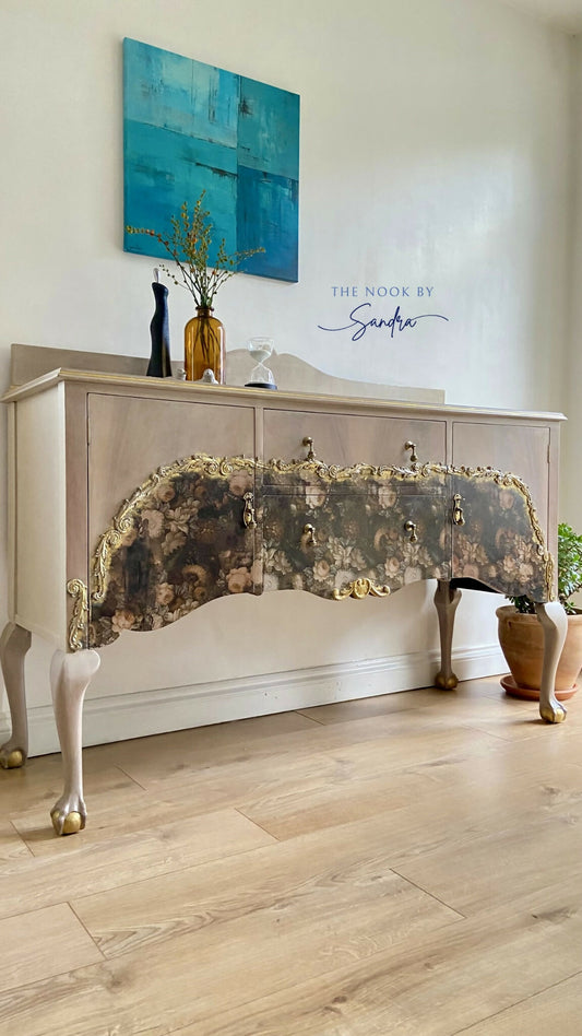Elegant Upcycled Sideboard •Cashmere Wash •Gold moulds •Floral Foil