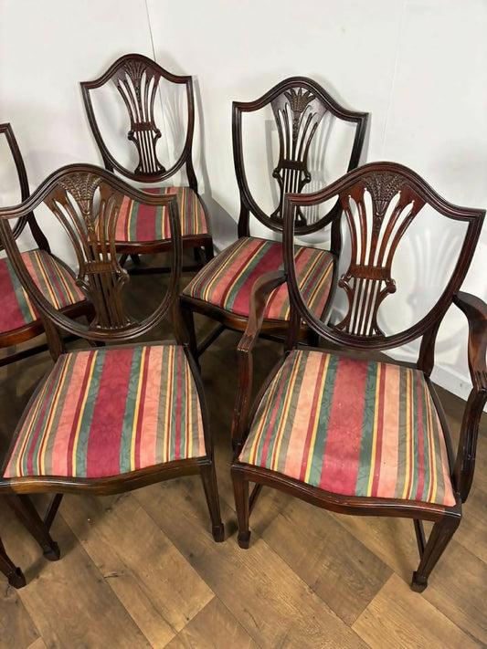 Regency Style Set of Six Mahogany Dining Chairs – Including Two Carvers, Wheatsheaf Backs