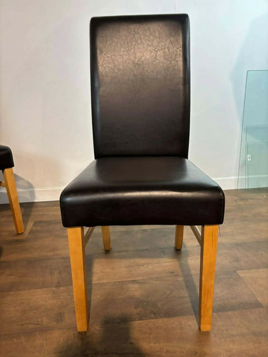 Set of Six Contemporary Dining Chairs – Black Faux Leather & Light Wood Legs