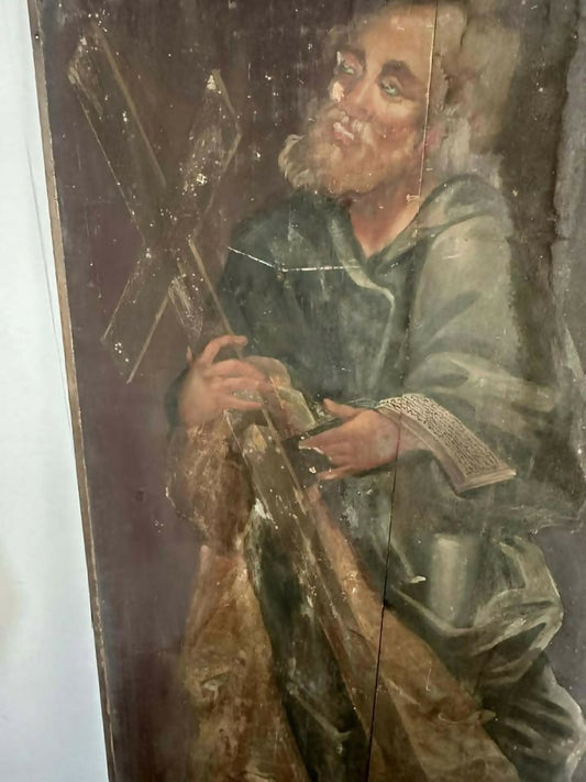 17/18th Century Polychrome Painted Pine Ecclesiastical Panel Depicting St Jude