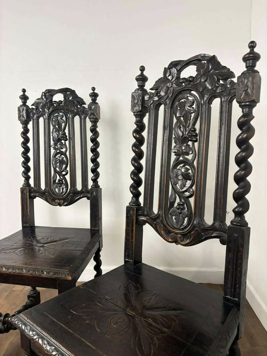 Victorian Set of Four Mahogany Slat Back Dining Chairs – Carved Backs, Turned Legs