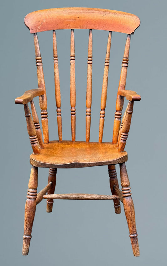 Vintage Set of Six Oak Ladder Back Dining Chairs – Including Two Carvers