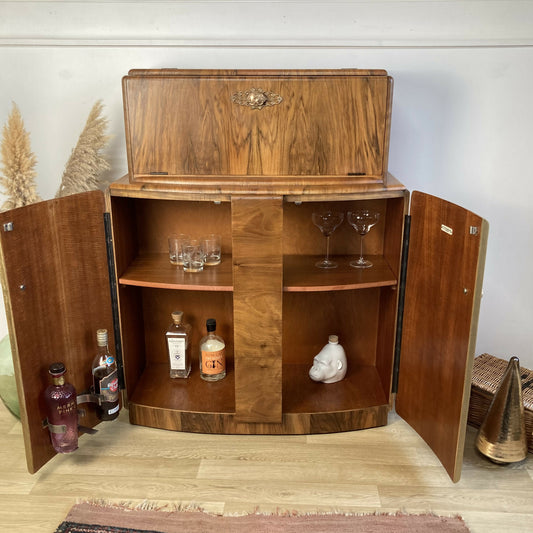 Art Deco Walnut Cocktail Cabinet with Gold Design