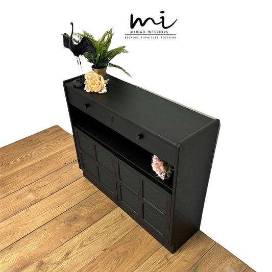 Made To Order - Refurbished rare mid century Nathan black sideboard, retro hallway table, teak console, vintage, slim, narrow