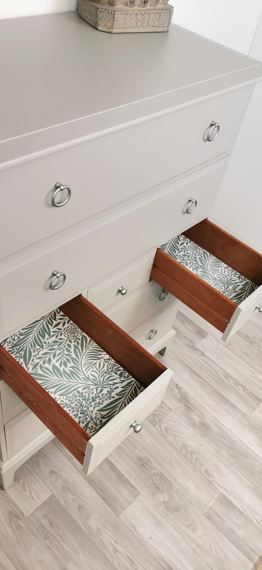 Stag minstrel white tallboy 7 drawer chest of drawers, professionally sprayed grey