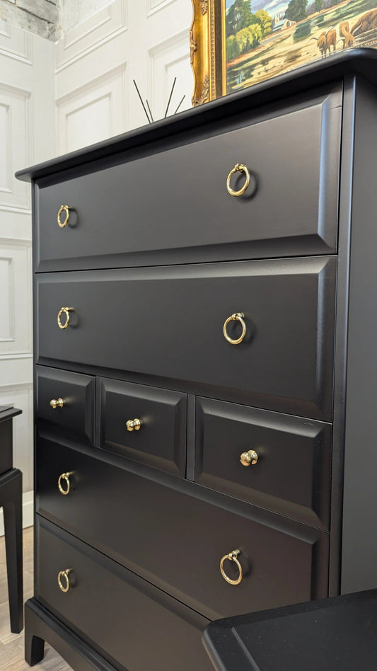 Stag minstrel black tallboy 7 drawer chest of drawers, professionally sprayed black