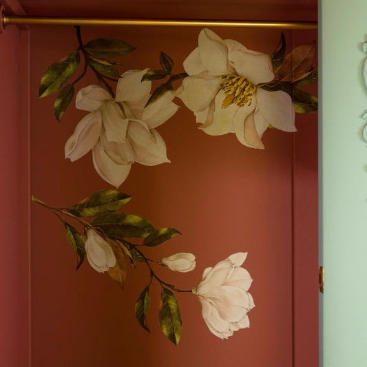Green display cabinet with floral design