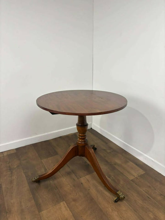 Antique Oak Round Console Table On Triform Base