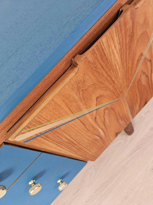 Hand-Painted Blue Chest of Drawers with Pearl Effect Stencil Detail | Vintage Upcycled Furniture