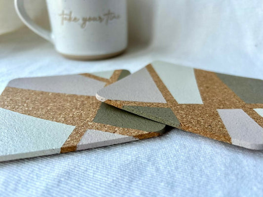 Hand Painted Square Cork Coasters (Set of 2)