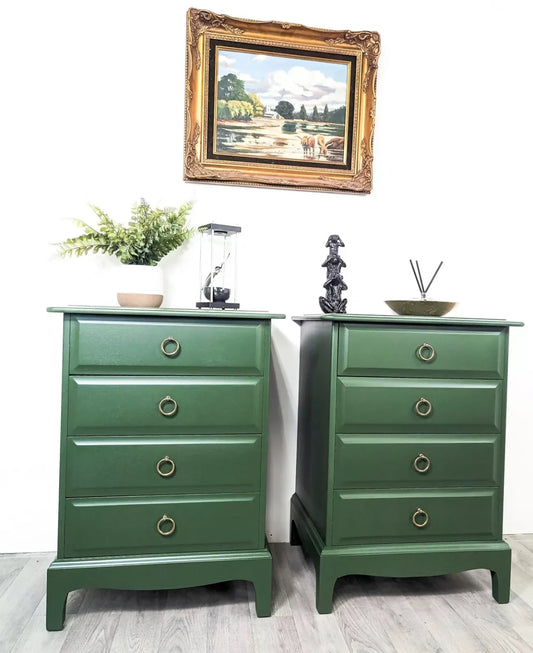 Profesionally Sprayed 2 X Green Stag Minstrel 4 Drawer Bedside Tables (pair)