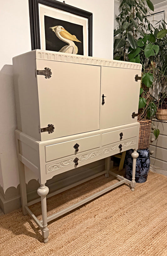 Newly refurbished Jacobean sideboard can sole table oak green antique
