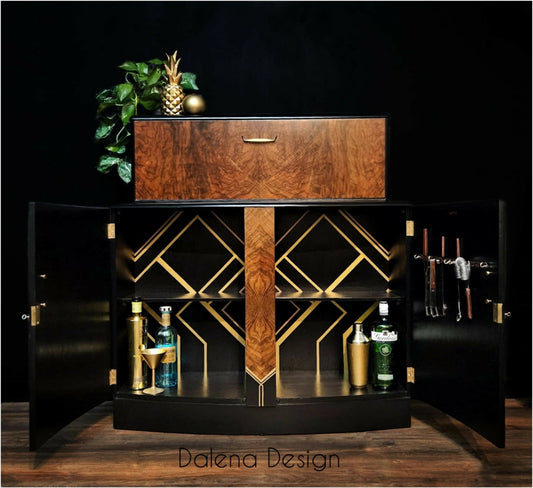 Made To Order Large Black Nathan sideboard dark grey with gold art deco design, mid century drinks cabinet, cocktail cabinet, console, mid century, statement, refurbished