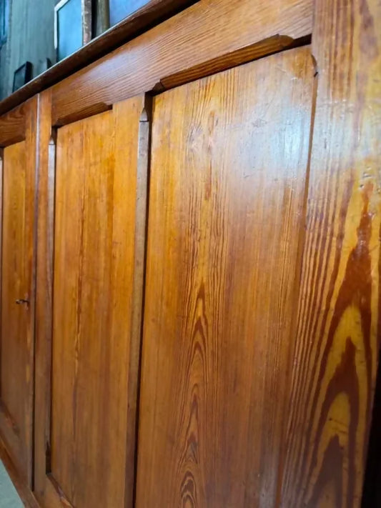 Antique Mid Victorian Pitch Pine School Educational Storage Cupboard Sideboard, c1850