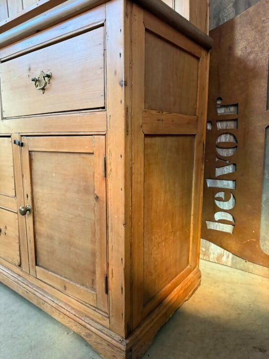Antique Pine Lincolnshire Dresser Housekeeper Cupboard Drawers, C 1850