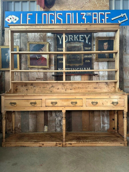 Antique Large English Farmhouse Pine Early Victorian Welsh Dresser Housekeeper Plate Rack Base, c1830