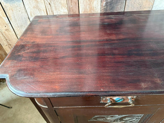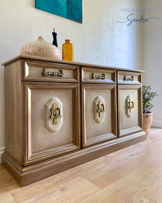 Vintage Oak & Mahogany Sideboard – Hand-Painted in Alabaster & Clay – Brass Handles – Refinished Furniture – One of a Kind