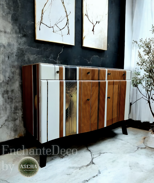 Mid-Century Modern MCM Bespoke Luxury Beautility Sideboard Drink Cabinet Modern black gold white stripes