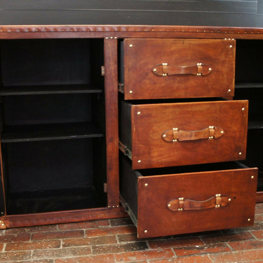 Handmade Hand Dyed Medium Brown Luxury Leather Sideboard